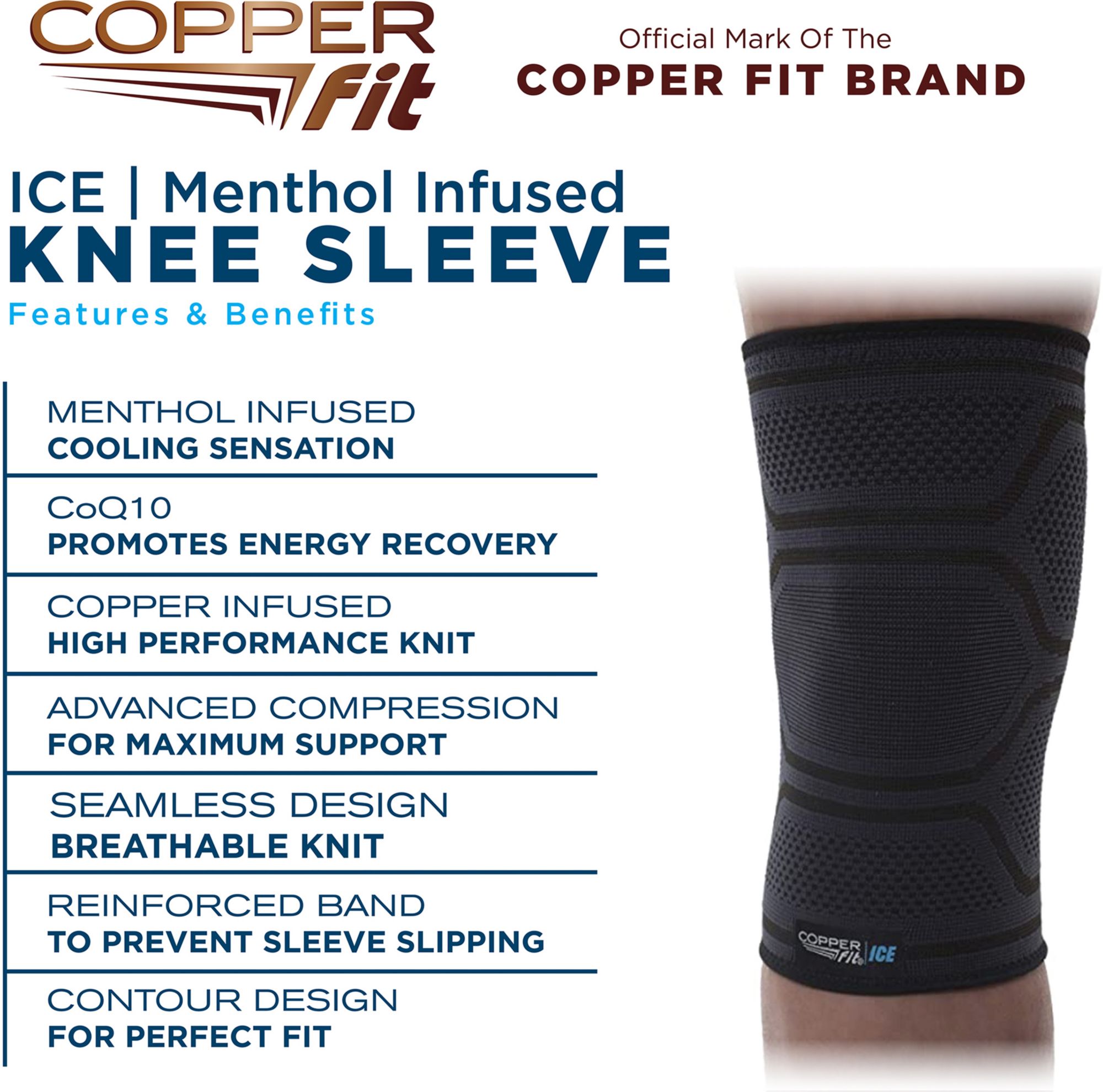 Watch Out For Bad Actors. Copper Fit Ice Knit Compression Knee Sleeve Infused With Menthol and Coq10 for 9 Total Ratings 9. Ad Compression Knee Sleeve with Cooling Menthol-Infused Fabric for Muscle Joint Discomfort.